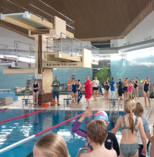 Die Trainer*innen betreuten ihre Schwimmgruppen intensiv, gaben letzte wertvolle Tipps und halfen, die Nervosität vor dem Start zu lindern. Gleichzeitig unterstützten einige Eltern tatkräftig bei der Durchführung des Wettkampfs. Die große Hilfsbereitschaft und der Teamgeist waren einfach großartig!